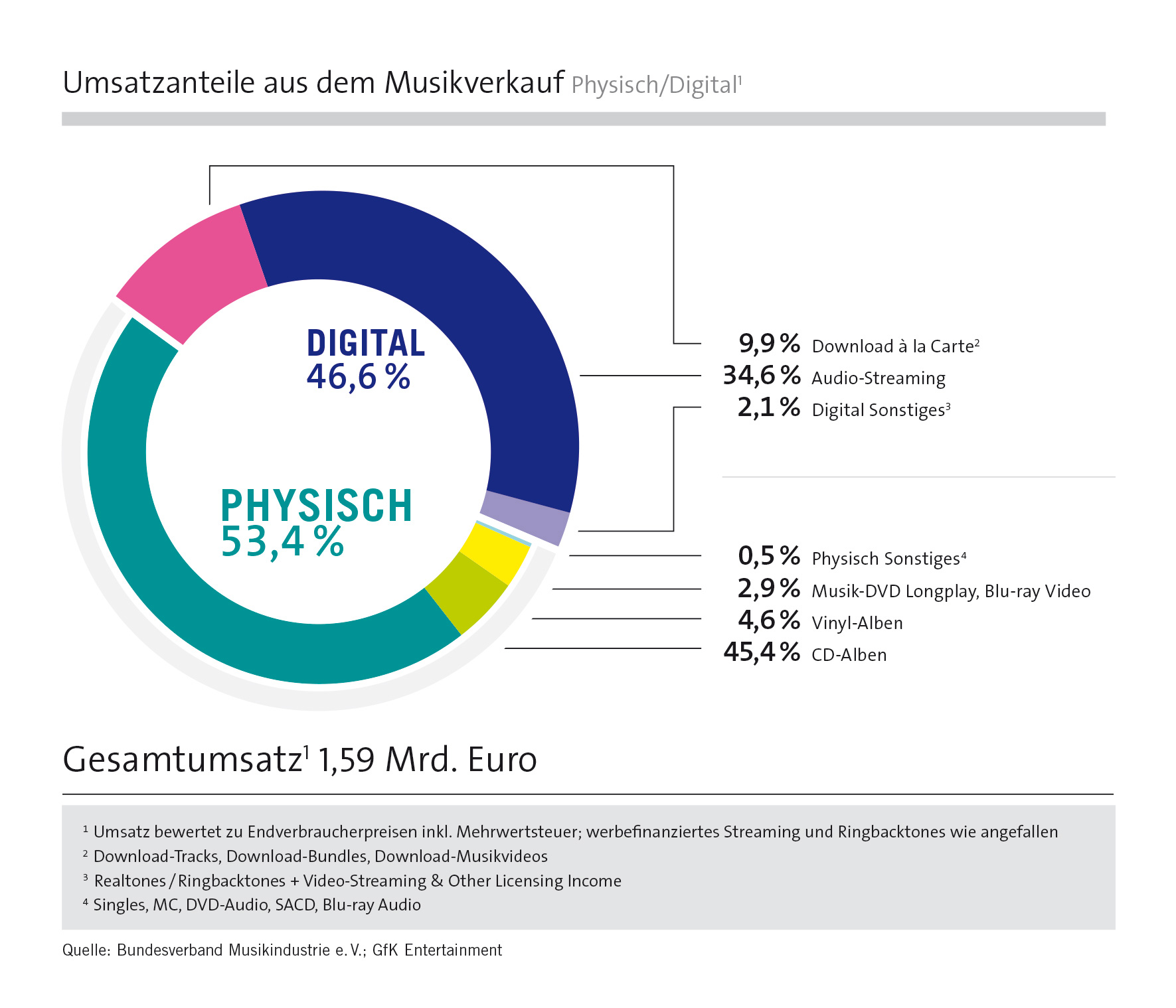 - Umsatzanteile aus dem Musikverkauf Physisch/Digital